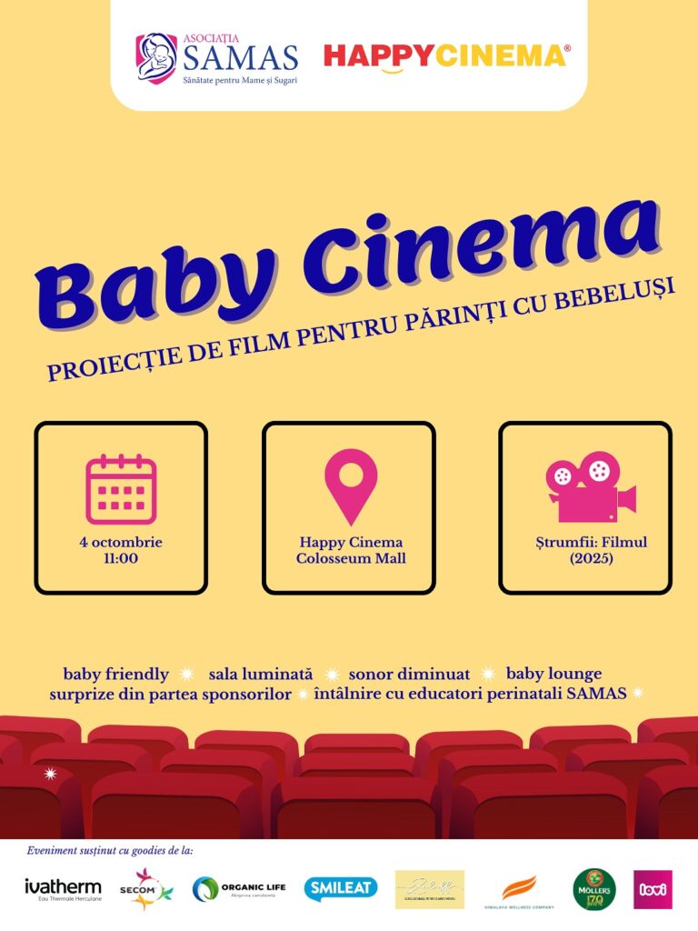 Toamna aceasta, proiectul Baby Cinema revine la Happy Cinema din Colosseum Mall, București, oferind părinților cu bebeluși și viitoarelor mămici ocazia de a merge la cinema într-un mediu adaptat nevoilor celor mici. Baby Cinema este un proiect inițiat de Happy Cinema, în colaborare cu Asociația SAMAS, și reprezintă prima inițiativă de acest tip din România. Lansat acum cinci ani, evenimentul s-a transformat într-o tradiție pentru părinți, fiind un prilej de relaxare, socializare și informare.