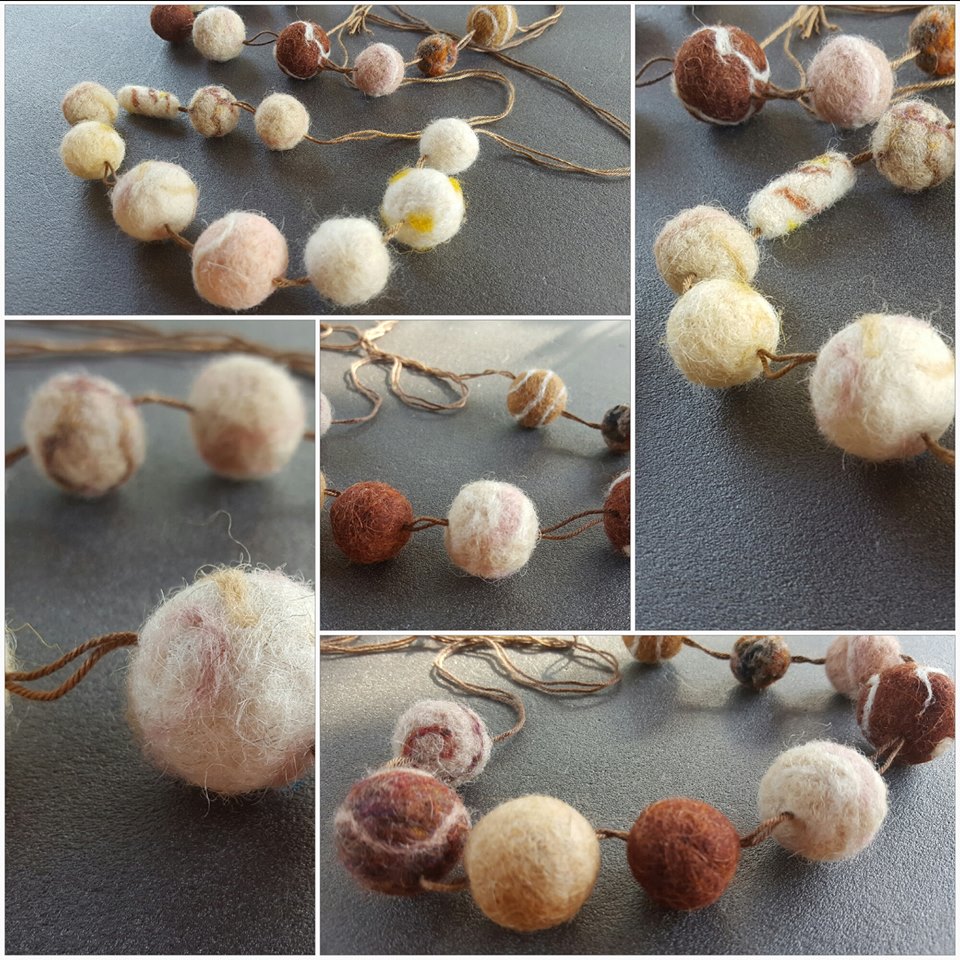 Eram și sunt îndrăgostită de această Artă a lânăritului. Nimic nu mă putea opri, am început să fac primele podoabe din lână împâslită, mărgele și pandantive, pe urmă au urmat păpușile din lână.