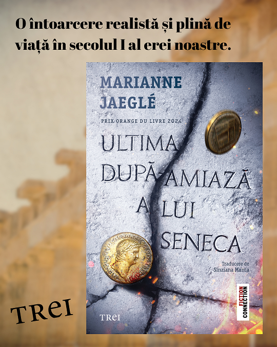 Publicată în România la Editura Trei, în colecția Fiction Connection și recompensată cu premiul literar Prix Orange du Livre în 2024 și cu Premiul Madeleine Daniélou în 2025, Ultima după-amiază a lui Seneca este o analiză și totodată o poveste captivantă a unui ideal trădat, a iluziilor pierdute și a confruntării dintre un spirit iubitor de dreptate și un tânăr conducător fără milă.